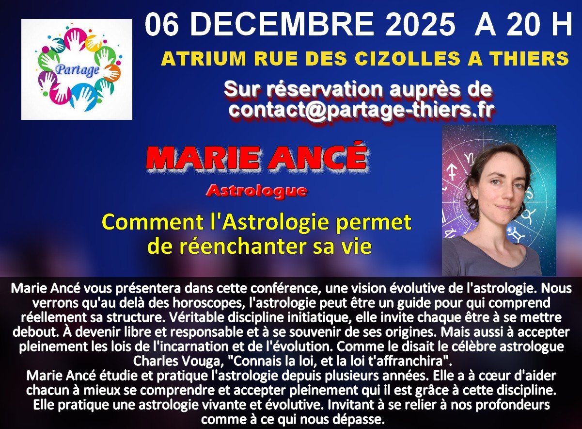 Sauf indications contraires les conférences ont lieu à l'ATRIUM à 20h